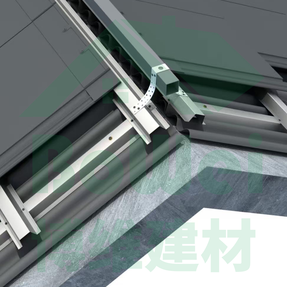 波形防水板屋面系統整個過程全部采用干法施工,消除了傳統防水材料烘烤或涂刷污染環境的弊端。這樣充分發揮了波形防水板上下雙層通風除濕的功能,上層能有效排掉因瓦材滲漏而產生的水氣,下層也能及時排除結構層施工和使用后產生的潮氣,延長附件使用時間,從而提高屋面系統15年以上的使用壽命。屋面空氣流通性明顯提高,夏天易于排除熱潮氣,節能環保。