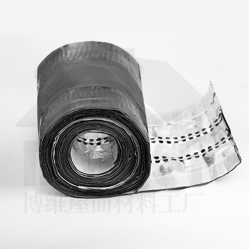 通風防水卷材,其優異的通風性能可以提高屋面的通風量,通風卷材中部具有的特殊性可以自動對頂空實現包裹,可以有效地防止屋脊內部釘孔位置滲漏。